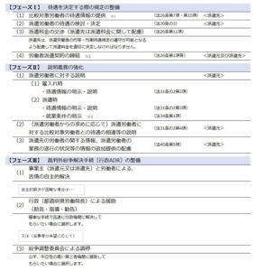 派遣先の正社員との待遇差などに関する職場でのトラブルについて、裁判外紛争解決手続(行政ADR)の規定が整備されました(都道府県労働局による無料・非公開の手続き)。