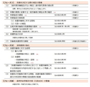 他方、労使協定方式における派遣労働者の待遇改善までの流れ、すなわち実際手順は、次の通りです。